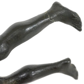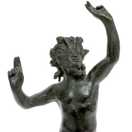 Scultura in metallo brunito rappresentante un fauno danzante, XX secolo, altezza cm 31 (difetti)