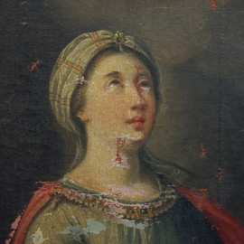 Scuola dell'Italia centrale del XVIII secolo, Santa Cecilia, olio su tela, cm 85,5x66 (difetti e lacune)