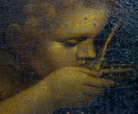 Scuola emiliana del XVIII secolo, San Giovanni Battista alla fonte, olio su tela, cm 35x46.5, entro cornice