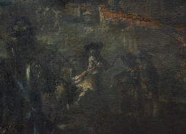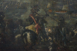 Scuola napoletana del XVII secolo, Battaglia, olio su tela, cm 95x134, entro cornice (difetti, cadute di colore)