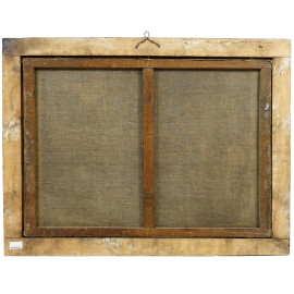 Scuola nord-europea del XVIII secolo, Natura morta con cacciagione entro un paesaggio, olio su tela, cm 79,5x110, entro cornice