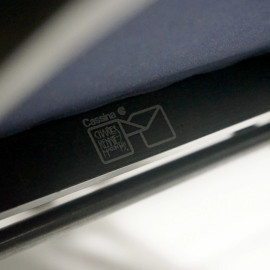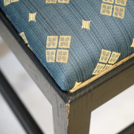 Sei sedie Ingram, Mackintosh per Cassina, anni '80, in legno laccato nero, con sedute rivestite in tessuto oro e blu, cm 106x44,5x41 (difetti e segni del tempo)