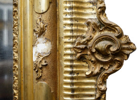 Specchiera con cornice in legno dorato, XIX secolo, ingombro cm 130x167 (difetti)