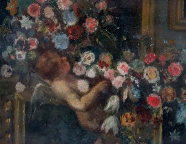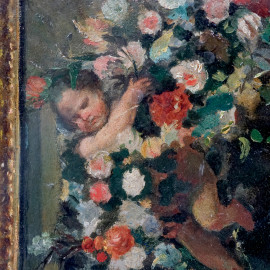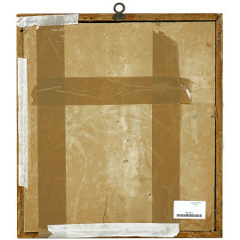 Specchio dipinto, XIX secolo, olio su cartoncino, cm 37,5x34, entro cornice