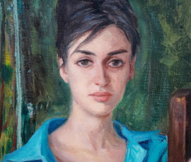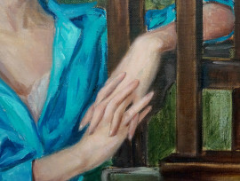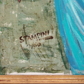 Ritratto della signorina Mirella Malfatti, olio su tela, firmato e datato in basso a sinistra Stampini 1960, firmato, datato e titolato sul retro, cm 100x70, entro cornice