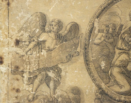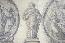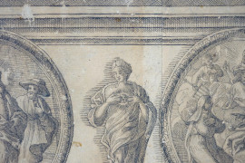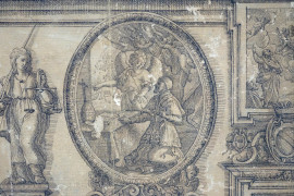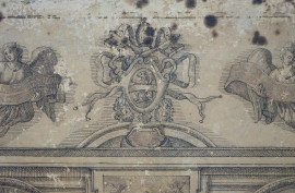 Studio architettonico, stampa su carta applicata su tela, sec, cm 43,5x93, (difetti)
