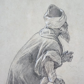 Uomo arabo di spalle, matita e biacca su carta, XIX secolo, misure comprese passepartout cm 49x38,5, entro cornice