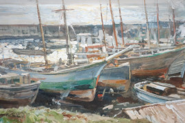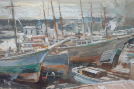 Valentino White (1909-1985), Torre del Greco, olio su cartone, firmato e datato in basso a destra, entro cornice