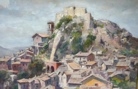 Valentino White (Positano 1909-Roma 1986), Cervara, olio su cartone telato, cm 35x50, entro cornice
