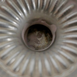 Vasetto in argento lavorato a sbalzo e a rilievo a motivi floreali e vegetali, XX secolo, peso gr. 140, altezza cm 13,8