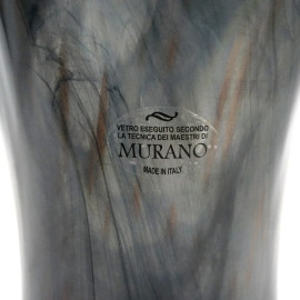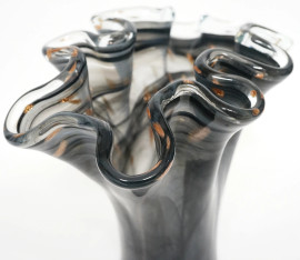 Vaso fazzoletto in vetro di Murano nei toni del grigio-viola e spruzzi oro, sec. XX, cm 29,5x32x22,5. (Difetti)