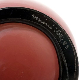 Vaso in vetro di murano incamiciato nei toni del bianco e del viola, firmato a graffio sotto la base "Venini Italia 83", altezza cm 28.8