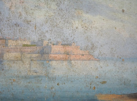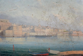 Veduta del Golfo di Napoli, cm 25x41, sec. XIX, tempera su carta, cm 25x41, entro cornice, (difetti)