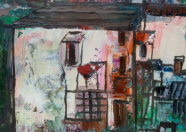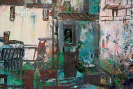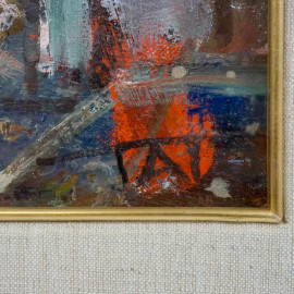 Veduta di città, olio su compensato, XX secolo, cm 40,5x50,5, entro cornice
