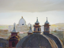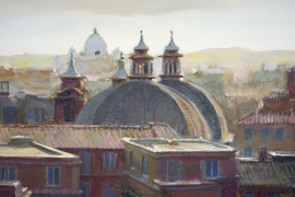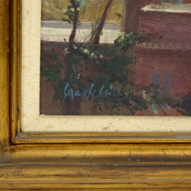 Veduta di Roma, olio su tela, XX secolo, cm 95,2x65,5, entro cornice
