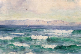 Veduta marina, XX secolo, olio su tavola, cm 35,8x22, entro cornice