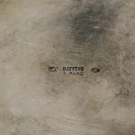 Versatoio in argento battuto con orlo decorato a cesello, F.lli Zaramella Bruno e Cesare, Padova, XX secolo, peso gr. 580, altezza cm 17