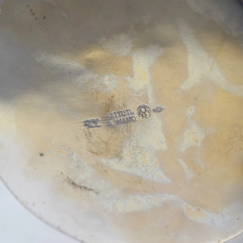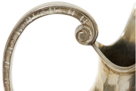 Versatoio in argento con corpo scanalato e manico cesellato, XX secolo, peso gr. 720, altezza cm 21,5