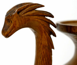Versatoio in legno intagliato a foggia di testa di drago, XX secolo, altezza cm 33,5 (difetti)