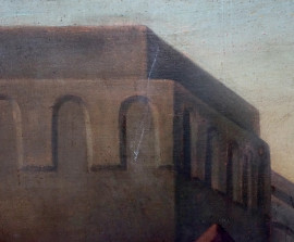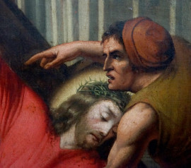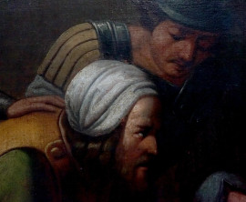 Via Crucis, olio su tela, sec. XIX, firmato e datato '1861' in basso a destra, cm 118x88,5 circa, entro cornice (difetti)
