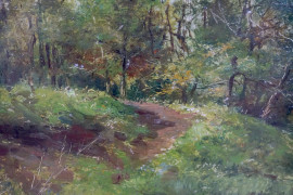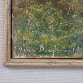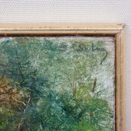 Villa Borghese, sec. XX, olio su tavoletta, cm 10x15, iscritto "Villa Borghese" in basso a sinistra e firmato "S. Selva" in alto a destra, entro cornice