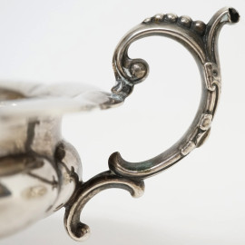 Zuccheriera in argento cesellato, coperchio con presa a foggia di fiore, reca stemma dei Savoia e iniziali sul coperchio, XIX secolo, peso gr. 380, cm 14x24