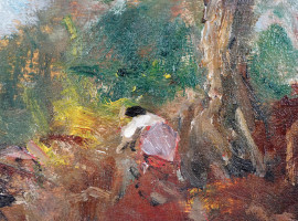 Alberi, olio su compensato, firmato in basso a destra Bocchetti, cm 17,9x24