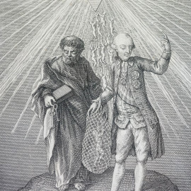 Allegoria dell'imperatore Giuseppe II come "nuovo pescatore di uomini", incisione, dopo il 1782, cm 68,5x48,5, entro cornice (difetti)