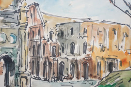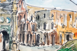 Arco di Costantino, acquarello su carta, cm 30x44,5, firmato, entro cornice.