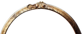 Bracciale rigido in oro giallo e bianco 8 kt con decori incisi, cm 5,3x4,5, peso gr. 6,1, (difetti)