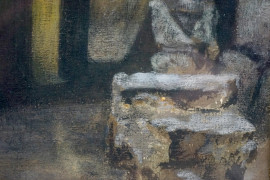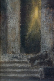 Capriccio architettonico, olio su cartone, cm 53,5 x 31,5, firmato M D Byrne, entro cornice