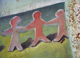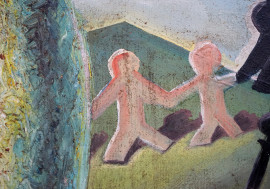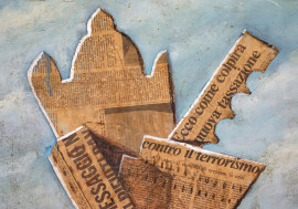 Contro il terrorismo, collage tecnica mista su tela, cm 70x50, firmato