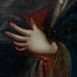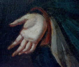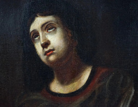 Copia da Carlo Dolci (1616-1686), Vergine orante, olio su tela, cm 35,5x30,5, XIX secolo, entro cornice