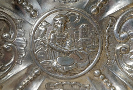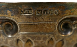 Coppa in argento sbalzato e cesellato, Londra, Argentiere John George Piddington, inizi XX secolo, cm h 13,2, peso gr. 237, (lievi difetti)