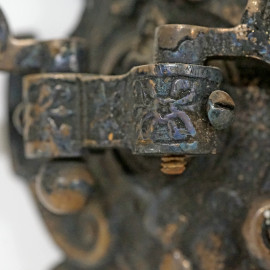 Coppia di applique in metallo brunito a due fuochi, XX secolo, cm 18,5