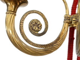 Coppia di appliques a tre luci in bronzo dorato, altezza cm 57