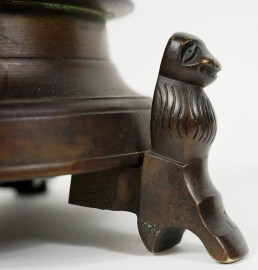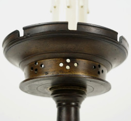 Coppia di lampade da tavolo in bronzo brunito, fine XIX secolo, cm h 47