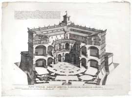 Falda Giovanni Battista Incisore, (1643 - 1678) e De Rossi Giovanni Giacomo editore (1627-1691) “Parte interiore taglio et apertura di dentro del Palazzo di Caprarola”, Spaccato di Palazzo Farnese a Caprarola, opera facente parte della serie “Palazzi di Roma dé più celebri architetti”, acquaforte su [..]