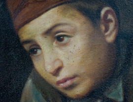 Fanciullo arabo con libro, olio su tela, cm 48x40, firmato E. Spadini, entro cornice, (difetti)