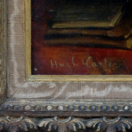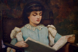 Fanciullo in lettura, olio su tela, cm 75x50, firmato Carter, entro cornice, (difetti)