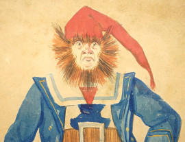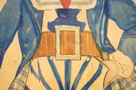Figura in maschera, XX secolo, acquerello su carta, cm 31,5x19,2, entro cornice