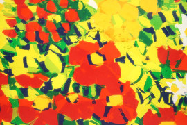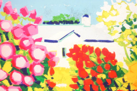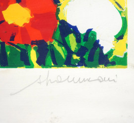 Fiori, serigrafia, esemplare numero 19/150, firmato in basso a destra A[thos] Faccincani, cm 70x100.5, entro cornice