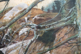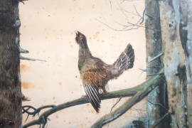 Bosco con fagiano, acquarello su carta, cm 66,5x45,5, entro cornice