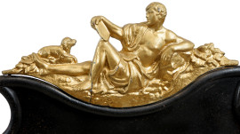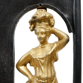 struttura letto costituita da due elementi sagomati ornati da figure neoclassiche in ghisa dorata.