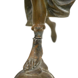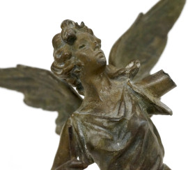 Lotto composto da una scultura in metallo rappresentante La Fama, firmata Pfeffer, e una scultura in metallo dorato rappresentante una figura alata, XIX-XX secolo, altezza max cm 28,5 (difetti e rotture)