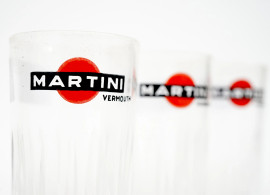 Lotto di sei bicchieri Martini Vermouth anni '60, altezza cm 12