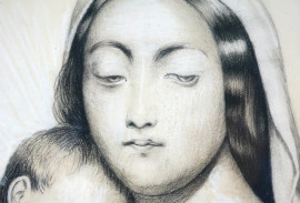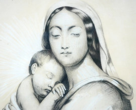 Madonna con il Bambino, matita su carta, XX secolo, firmato in basso a destra, cm 41,5x34,5, entro cornice