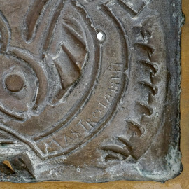Composizione astratta, placca in bronzo, firmata Mastroianni, cm 22x18,5