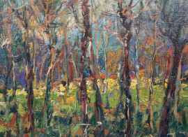 Nel bosco, olio su tavola, cm 29x38.5, firmato, entro cornice
