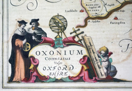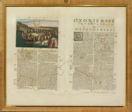Oxonium comitatus vulgo Oxfordshire, incisione, cm 49,5x59, XVII-XVIII secolo, entro cornice (difetti)